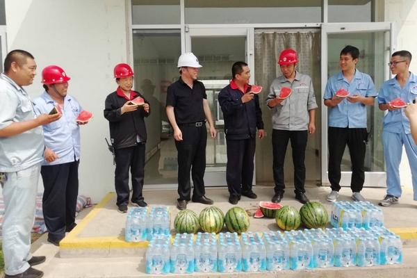 進(jìn)入三伏天后,一線職工的工作和生活情況時(shí)刻牽動(dòng)著集團(tuán)領(lǐng)導(dǎo)的心,7月29日上午,集團(tuán)工會(huì)主席韓紅喜一行來到藥業(yè)公司撲熱車間,為工作在一線的職工送去礦泉水、西瓜等解暑物品,韓主席同時(shí)囑咐大家在保證做好安全生產(chǎn)工作的同時(shí),一定要照顧好自己的身體,注意勞逸結(jié)合和做好防暑工作,同時(shí)囑咐現(xiàn)場(chǎng)的管理人員做好職工后勤保障工作,切實(shí)保護(hù)好一線廣大職工的身體健康。